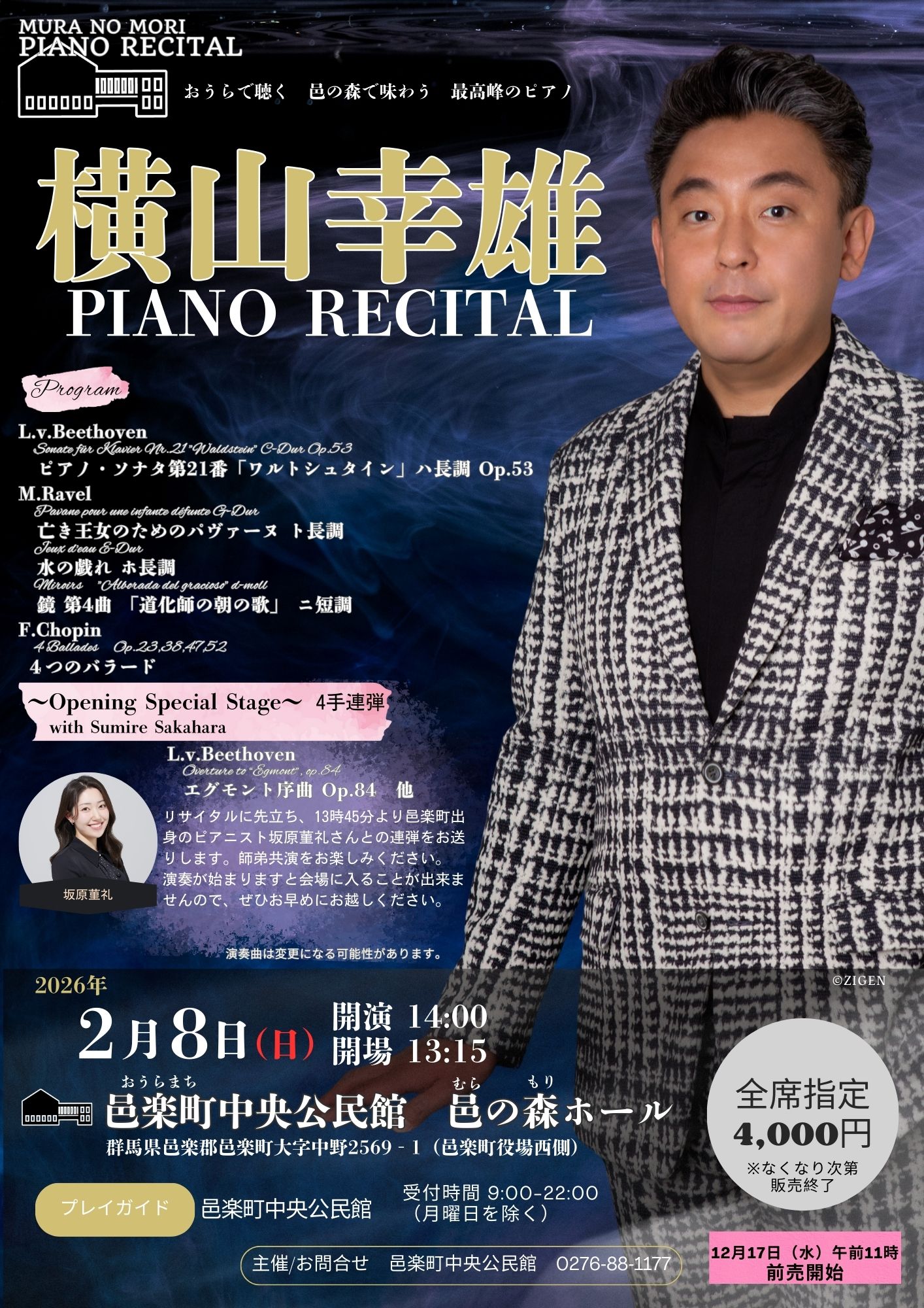 2026年2月8日(日) 開場13:15 開演14:00〜 [全席指定] 4,000円 チケット発売日:2025年12月17日(水)午前11時〜