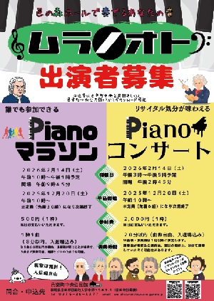 2026年2月14日(土) ■Painoマラソン 開場9:45 開演10:00〜13:00 ■Painoコンサート 開場14:45 開演15:00〜17:00 詳細は掲載の資料をご確認ください。 各申し込み受付は12月20日(土)10時から