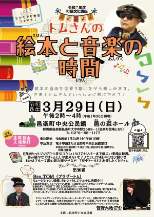 令和7年度町民文化講座 トムさんの絵本と音楽の時間 |